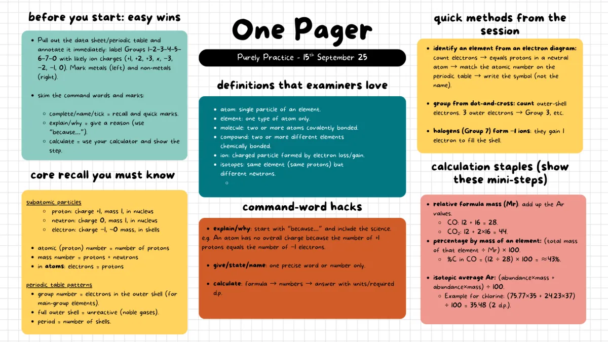 📌 The One Pager – a recap sheet with the top takeaways: what to revise, common exam hacks, and how to apply them.